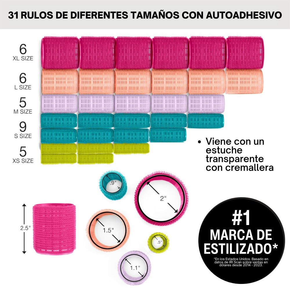 - Tamaños variados: Incluye rulos de diferentes tamaños para diferentes estilos de rizos y ondas.